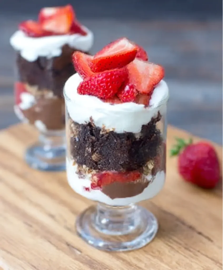 To make your creamy chocolate strawberry cake parfaits a bit healthier, consider these alternatives:
