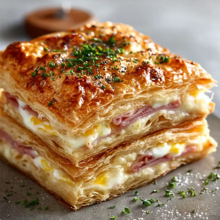 Crispy Ham & Cheese Puff Pastry Stacks are a delightful and elegant appetizer that combines flaky puff pastry with savory ham and melted cheese. Perfect for parties, gatherings, or as a tasty snack, these stacks are easy to prepare and sure to impress your guests. With their golden-brown layers and delicious filling, they make a wonderful addition to any menu. Let’s explore how to create these crispy and flavorful treats!