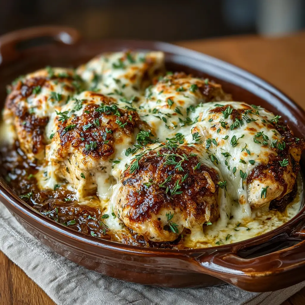 This French Onion Chicken Bake is a comforting and flavorful dish that combines tender chicken with the rich flavors of French onion soup, topped with gooey melted cheese. It’s a perfect one-pan meal for a cozy family dinner or a special occasion!