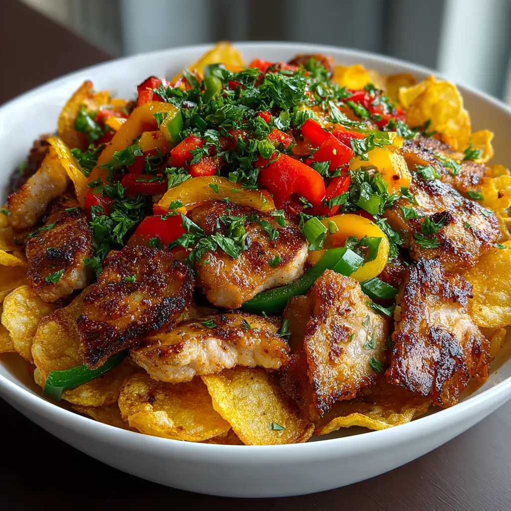 1. Combine Chips and Chicken: In a large bowl or platter, combine the crispy chips and fried chicken.