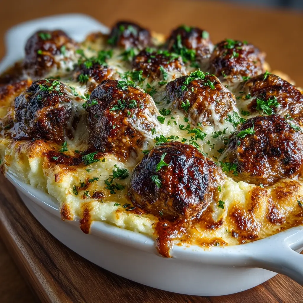 3. Serve hot and enjoy your Meatball & Mashed Potato Bake!