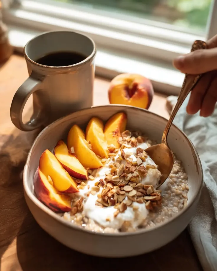 In summary, the Peach Oatmeal Bowl is a delicious and healthy breakfast option that’s quick and easy to prepare. With its creamy oats, fresh peaches, and nutritious toppings, it’s sure to become a favorite in your breakfast rotation. Give this recipe a try, and let us know how you enjoyed it in the comments! For more healthy recipes and cooking tips, subscribe to our blog for the latest updates.