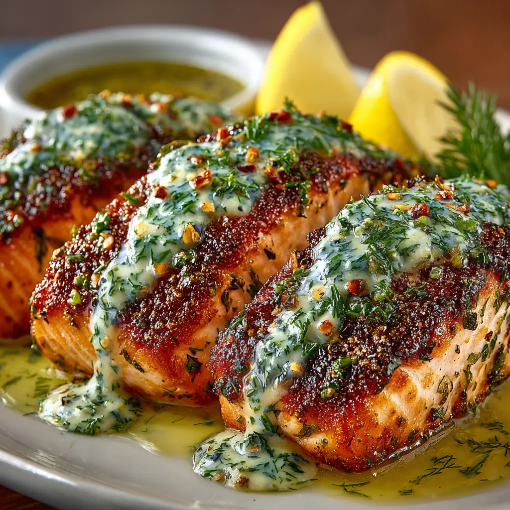 - Add Sauce: Spoon the lemon dill sauce over the top of each salmon fillet.