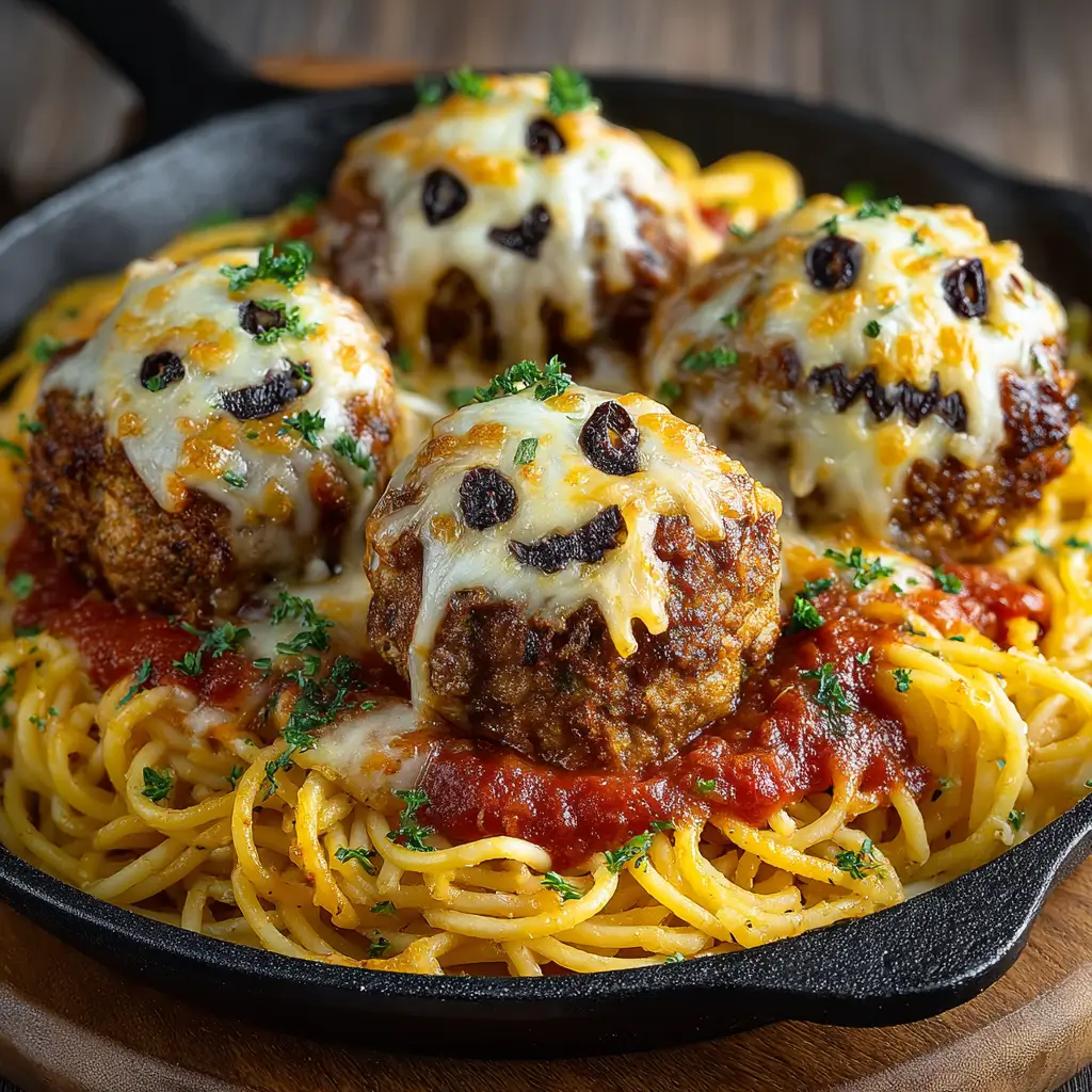 Spooky Spaghetti & Cheesy Monster Meatballs Recipe
