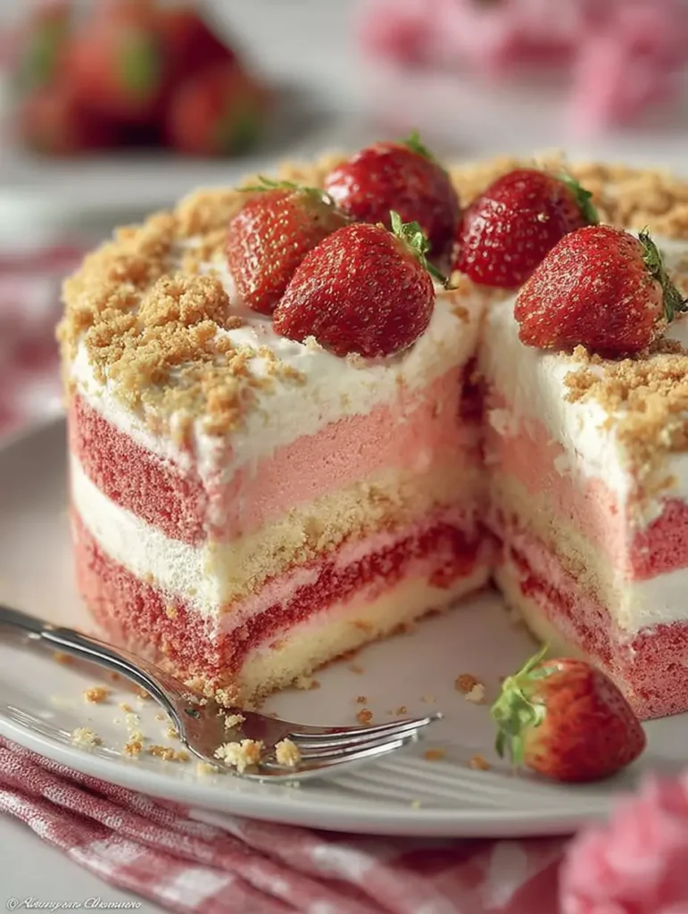 In summary, this strawberry crunch cheesecake is a delicious and easy dessert that brings together creamy cheesecake and crunchy toppings with vibrant strawberry flavors. It’s perfect for any occasion and is sure to impress your guests. Try this recipe today, and don’t forget to share your feedback in the comments or leave a review! Subscribe for more delicious recipes and updates!