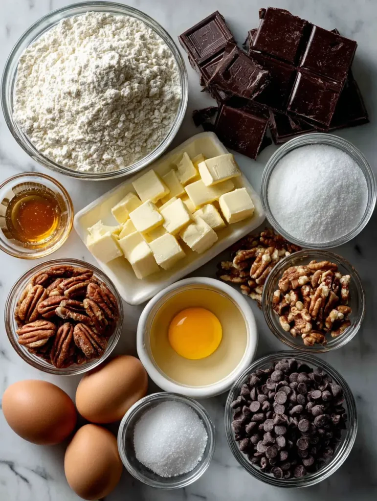 - Substitutions: You can use dark chocolate chips for a richer flavor or substitute half of the pecans with walnuts if desired.