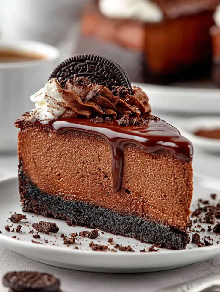3. Slice and Enjoy: Carefully remove the sides of the springform pan, slice the cheesecake, and serve. Enjoy the rich layers of chocolate!